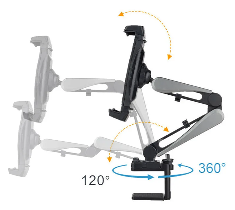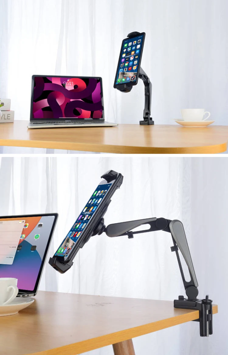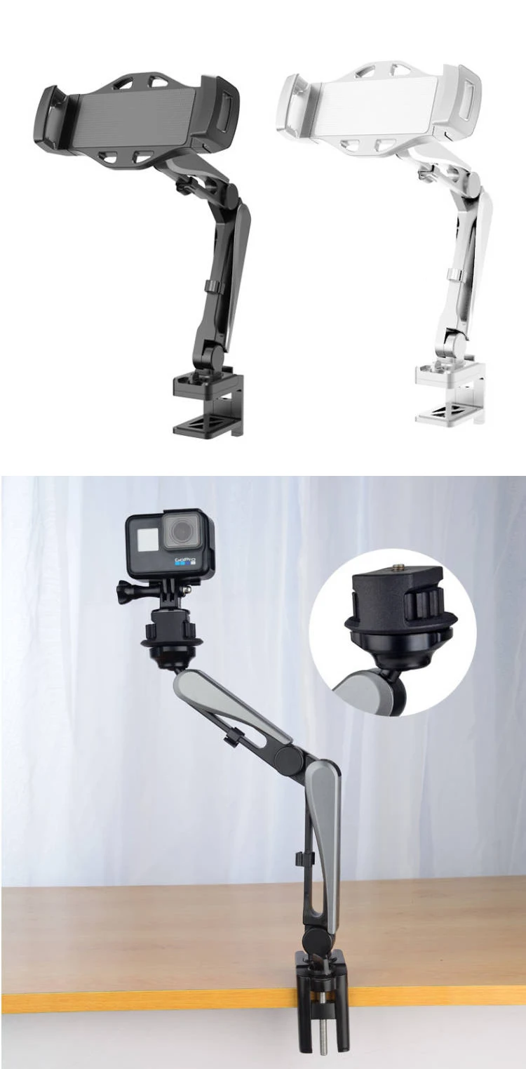 Aluminum Long Arm Clamp Mount Phone/Tablet Holder